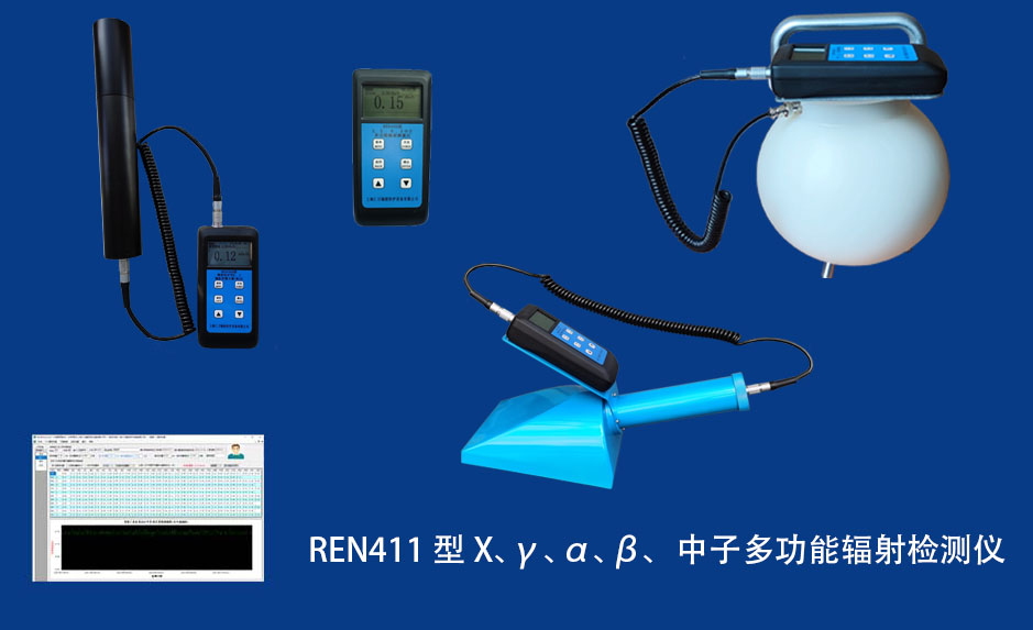 REN411 多功能射線劑量儀 REN411型多功能輻射檢測儀是以內置高靈敏度蓋格計數管為探測器,外接不同類型的探頭來實現對低劑量χ、γ射線,高劑量χ、γ射線,α、β、中子射線的檢測。作為多功能輻射巡測儀,能顯示工作場所的輻射值,自動連續測量和記錄280萬條輻射劑量率數據,更換電池時,日歷、時間及檢測數據能永久保存。工作人員可以任意設定報警值,超閾值后自動發出聲音、震動和光報警。多功能輻射檢測儀適用于核設施、核技術應用單位、廢舊鋼鐵、防化部隊、 加速器、同位素應用、工業X、γ無損探傷、放射醫療、鈷源治療、γ輻照、放射性實驗室的輻射場調查及事故應急輻